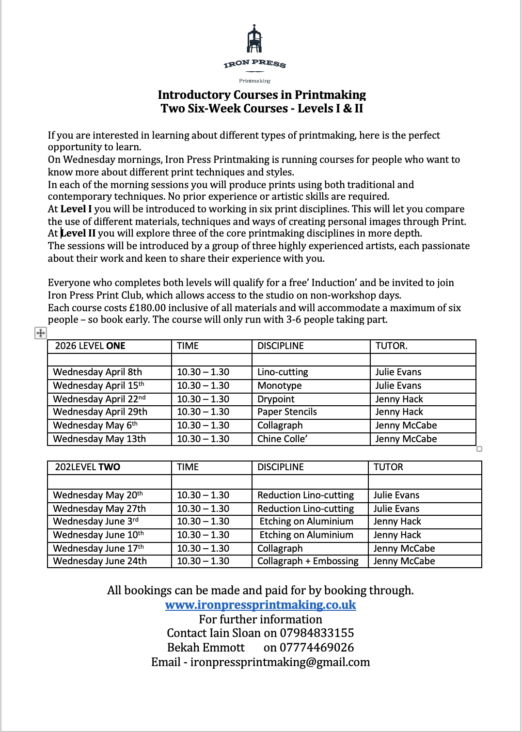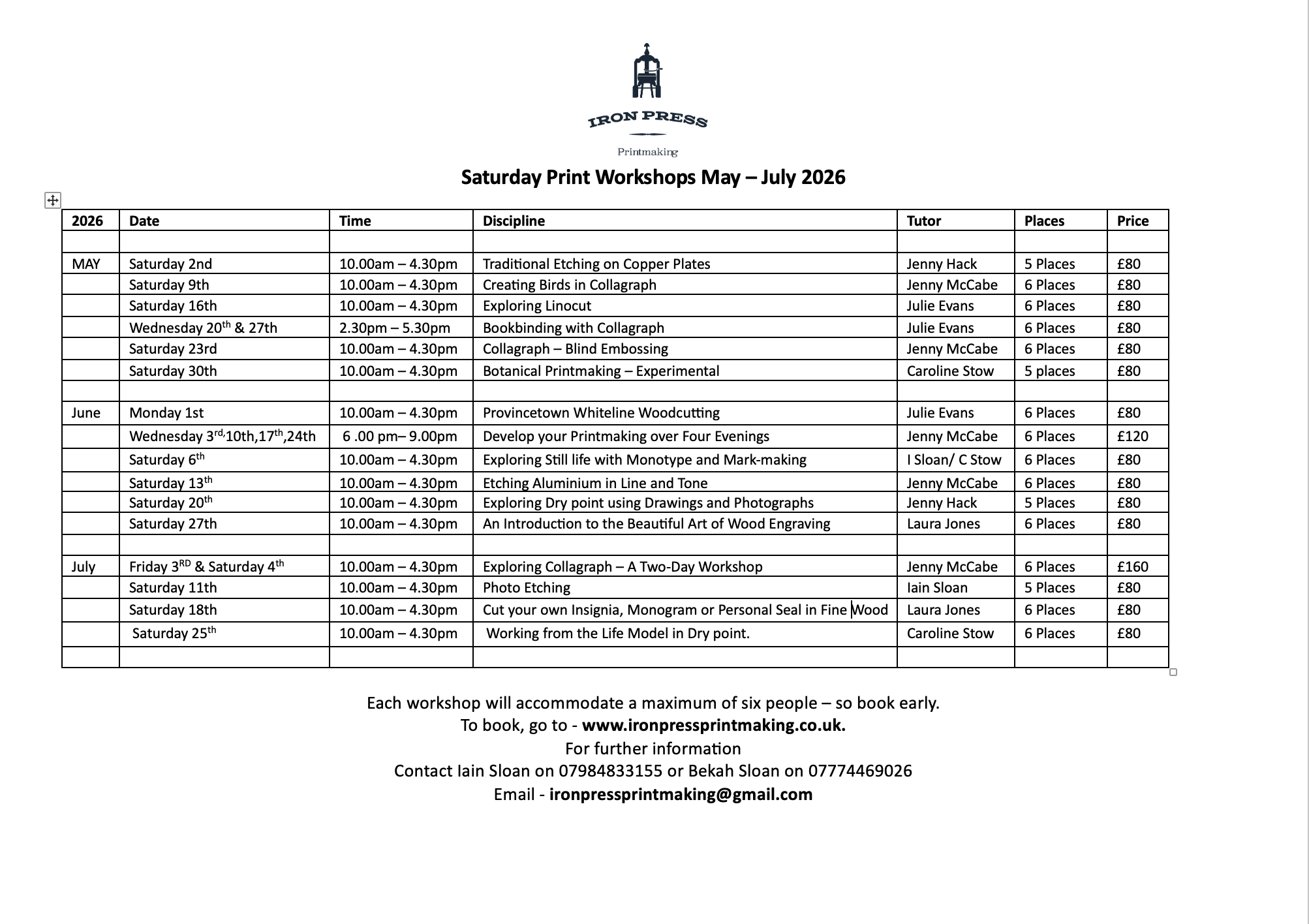 WORKSHOP INFORMATION